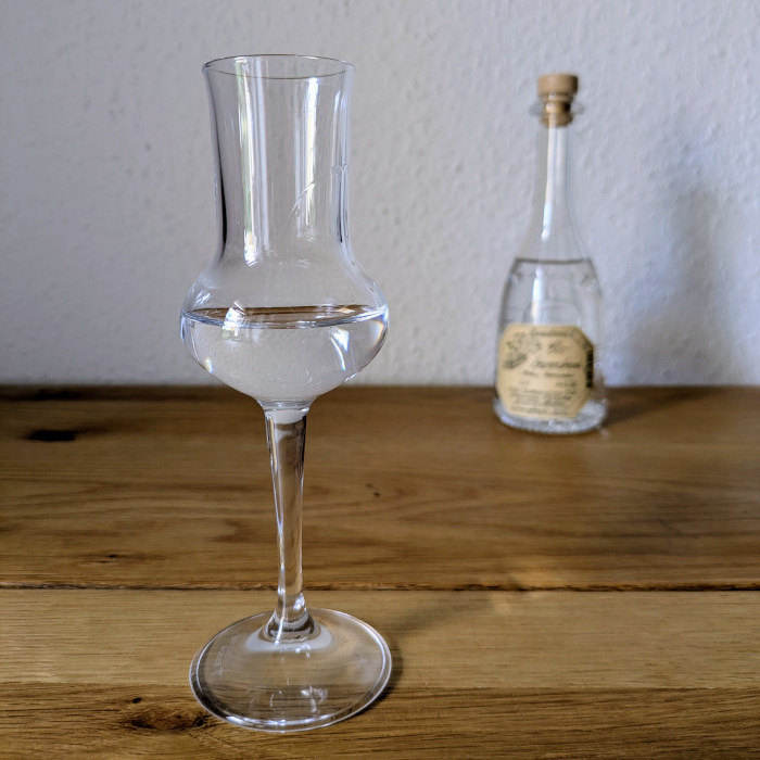 Die Nase ist gefällig, mit leichter Erdnussnote und etwas Holz, aber sehr viel weniger als sein noch farbig gehaltener Bruder zuvor. Die Agave ist sichtbarer, etwas, was ich sehr zu schätzen weiß, und für einen Cristalino sogar ausgeprägt, würde ich sagen. Weiterhin sind leichte Puddingeindrücke da, Vanille und Butterscotch, ein bisschen buttriges Croissant. Eine kleine Ethanolschicht stört da dann schon, insbesondere bei dem doch niedrigen Alkoholgehalt sollte das nicht sein. Der Körper fühlt sich in der Nase leicht an, trotz all der süßen Aromen.
