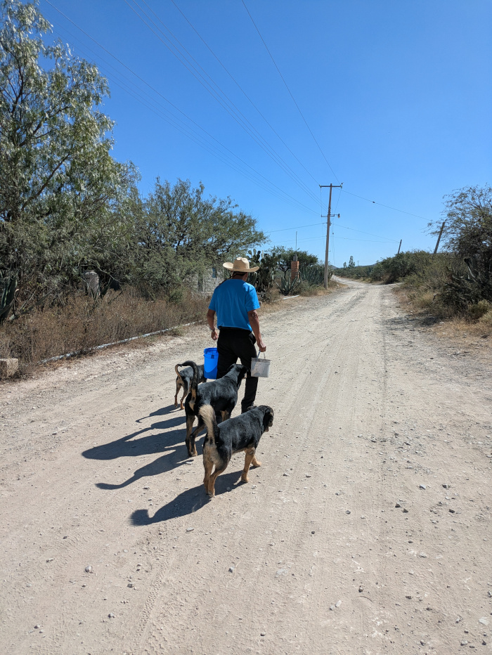Eben dieses Basismaterial, Pulque, ist hierzulande unbekannt, darum zeige ich hier noch ein paar Bilder, die ich 2024 geschossen habe, als ich einen Pulquebrauer in San Luis Potosí bei der Erntearbeit begleiten konnte – frischen Aguamiel zu trinken, vor ein paar Momenten aus der Agave geschöpft, ist ein wirklich besonderes Erlebnis. David und seine Mutter Eufemia (die in der Region La Jefa del Pulque genannt wird, das muss man nicht übersetzen) sind großartige Gastgeber, die uns zur am Vortag angesetzten Pulque auch Erfrischungen und Snacks anboten.