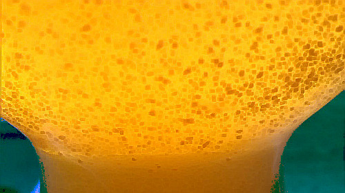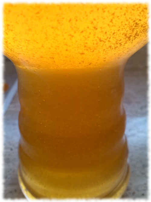 Das besondere dieses IPAs sind die Schweb- und Trübstoffe, die wirklich spektakulär in kleinen Flöckchen durchs Glas schweben, und bei jedem Schluck aufgewirbelt werden. Gegen das Licht gehalten sieht man es auch schon in der Flasche.