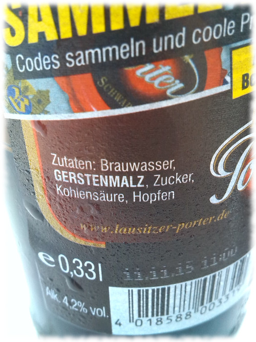 Die Biergattung des „Porter“ ist wohl nicht geregelt. Jeder kann sein eigenes Süppchen als „Porter“ vermarkten, wenn er es will – selbst, wenn es eigentlich Cola mit leichtem Bierzusatz ist. Wie beim Lausitzer Porter Schwarzes.