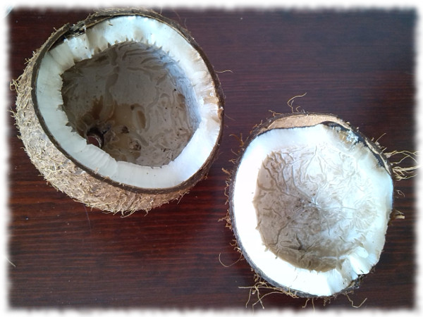 Obwohl dieser Versuch eigentlich ganz anders ausging als geplant, bin ich doch begeistert. Und so werde ich bald einen zweiten Versuch unternehmen, um doch noch an den Kokosrum zu kommen, den ich eigentlich haben wollte, und den die Engel mir geklaut haben. Bis dahin kaue ich ein paar Stücke leckeres Kokosrum-Fruchtfleisch als Wegzehrung.