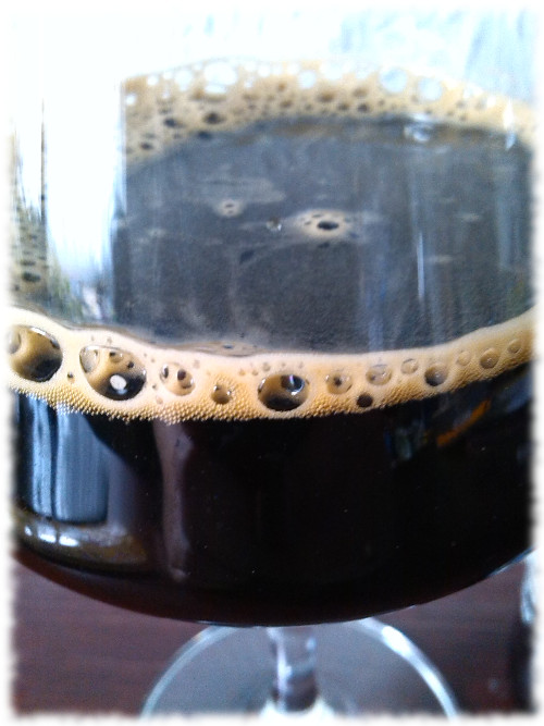 Viele Biere machen ein helles „gluckgluckgluck“ beim Einschenken. Dieses Imperial Stout macht dagegen „plockplockplock“, es sieht aus und fühlt sich an, als ob Teer bröckchenweise ins Glas schlabbert. Unglaublich dick, fest und pechschwarz. Ein Geruch nach Honig verbreitet sich, und die für Stouts üblichen Aromen nach Malz und Röstung.