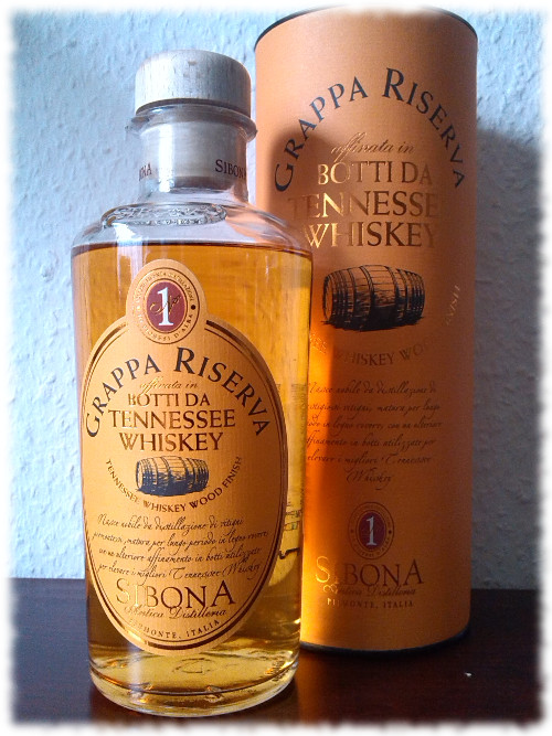 grappasibonatennessee-flascheWie lange dauerte dieser Finish? Die Bezeichnung Riserva, die dieser Grappa trägt, sagt aus, dass der Grappa mindestens 18 Monate in Holz gereift ist, über die Zusatzbezeichnung affinata ist in der italienischen Wiki zu lesen: „Termini come ‚affinata‘ o ‚barricata‘ non danno nessuna indicazione del tempo di giacenza nei legni (…)“ – es würde also wohl schon reichen, den Grappa einige Minuten im Tennessee-Whiskey-Fass zwischenzulagern. Die Herstellerseite spricht aber von „weiteren Monaten“ in den Whiskeyfässern; manche Verkäufer in ihrem verkaufsorientierten Optimismus sogar von 2 Jahren. Nichts genaues weiß man nicht, wie so oft.