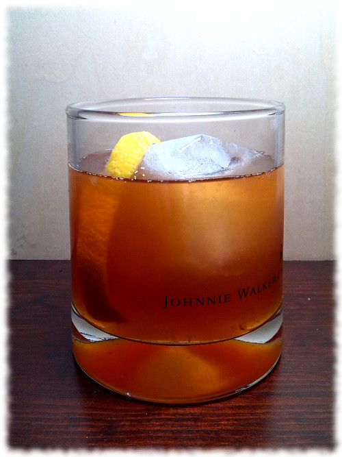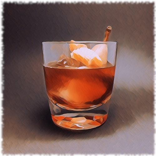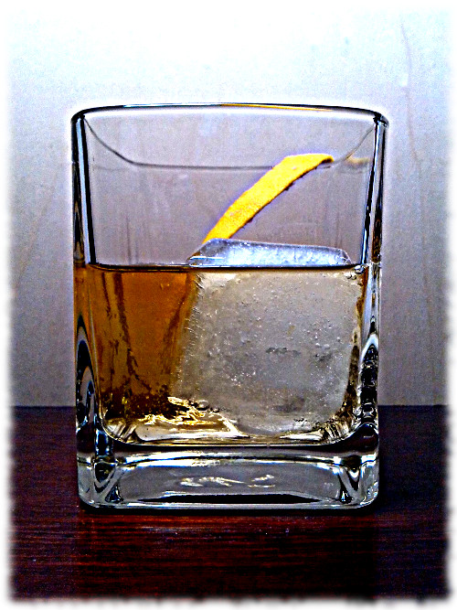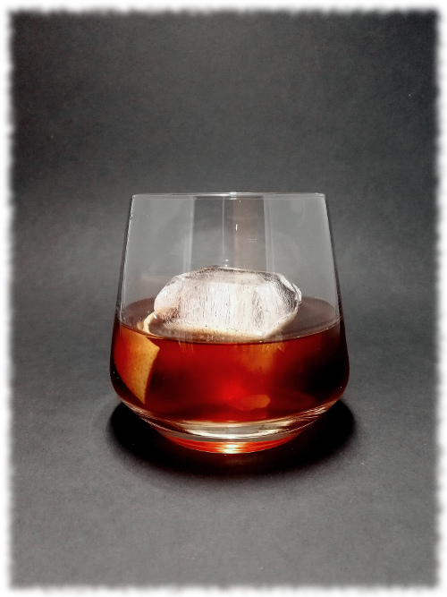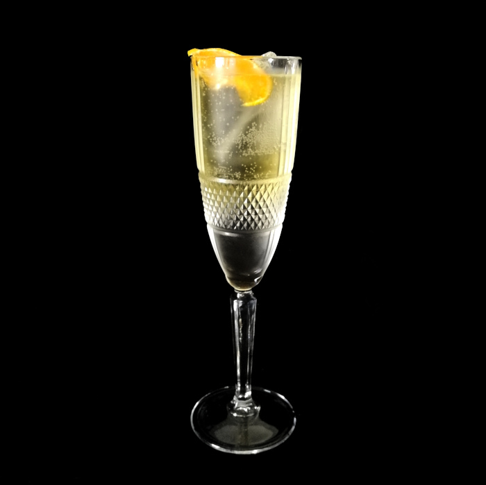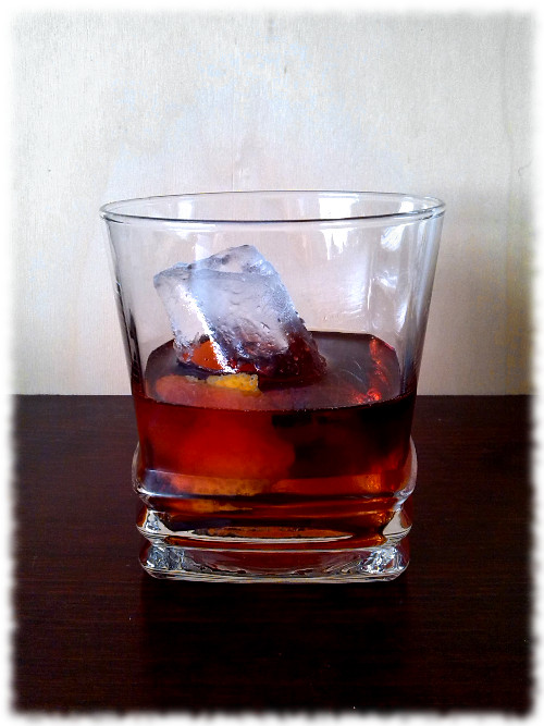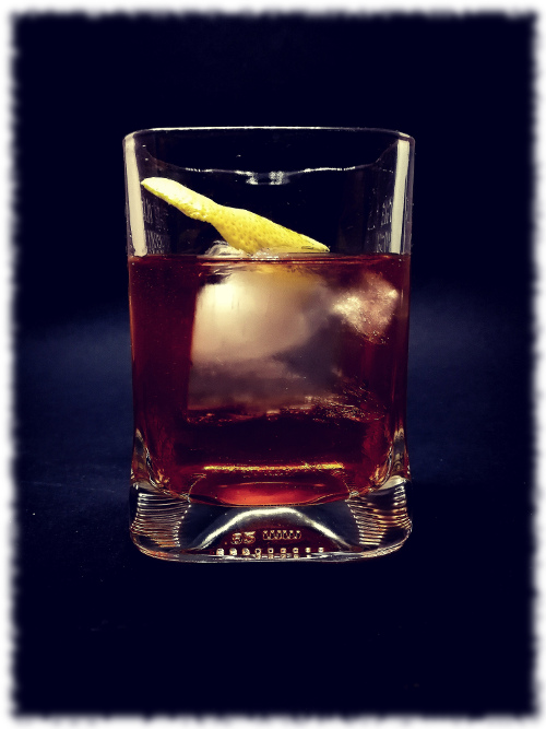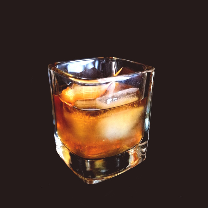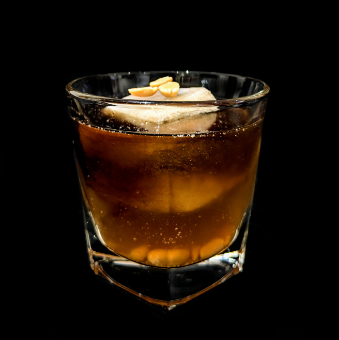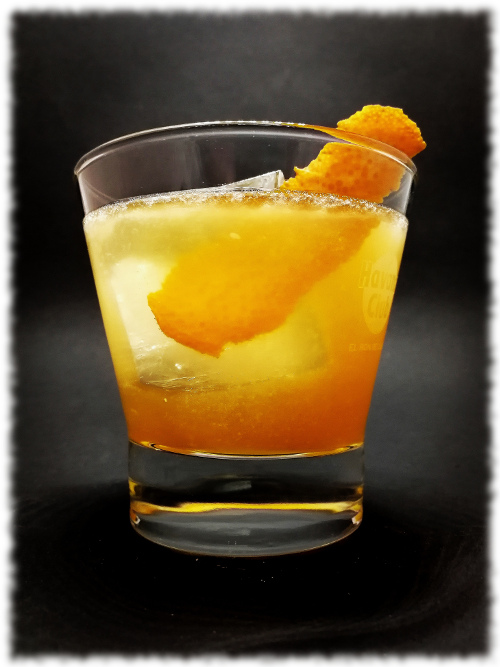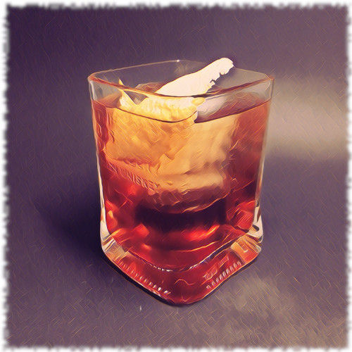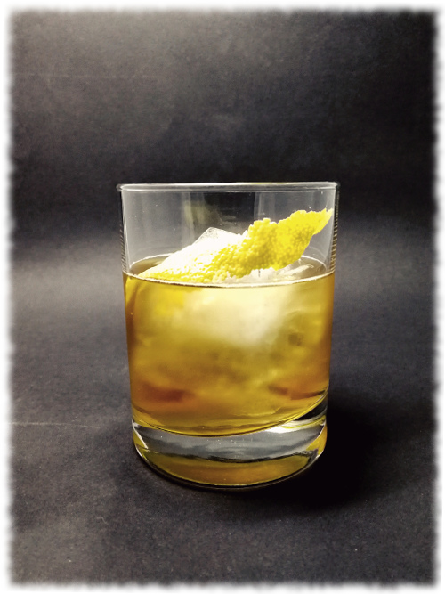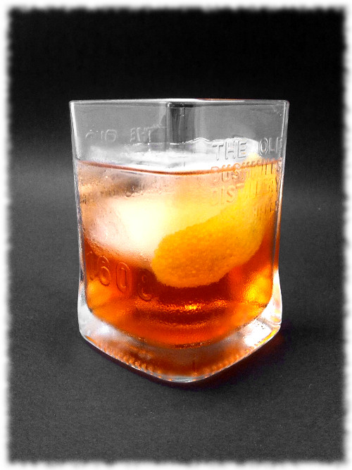 Auf Eis rühren. Mit einer Orangenzeste absprühen und dekorieren.