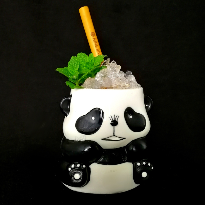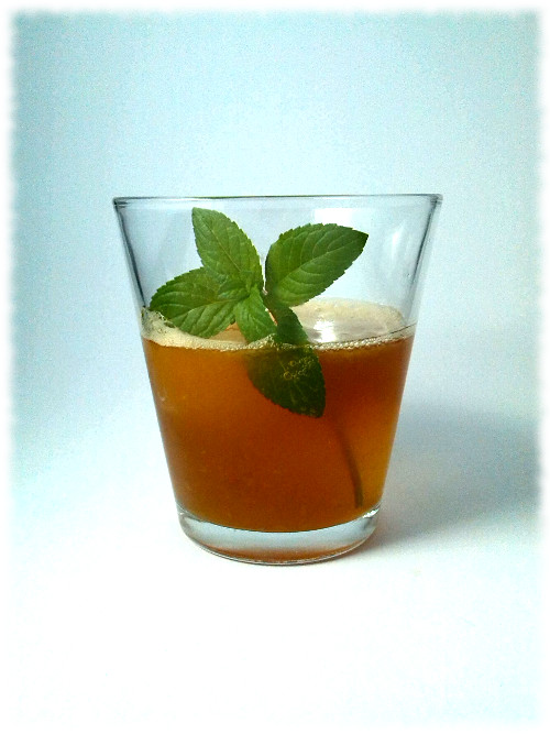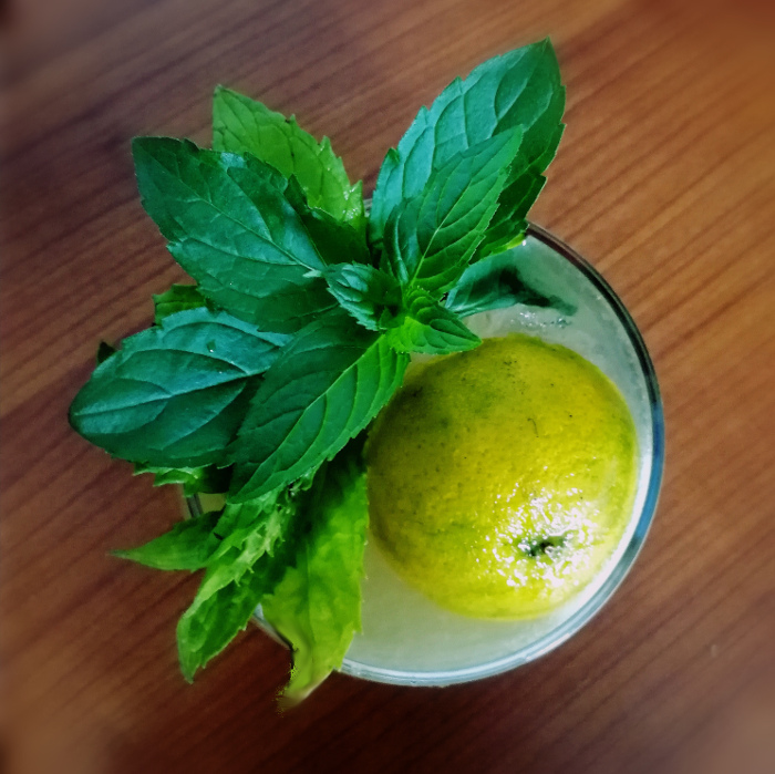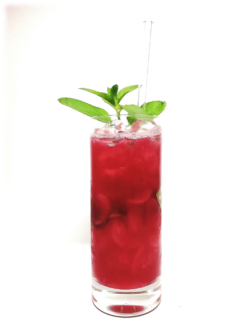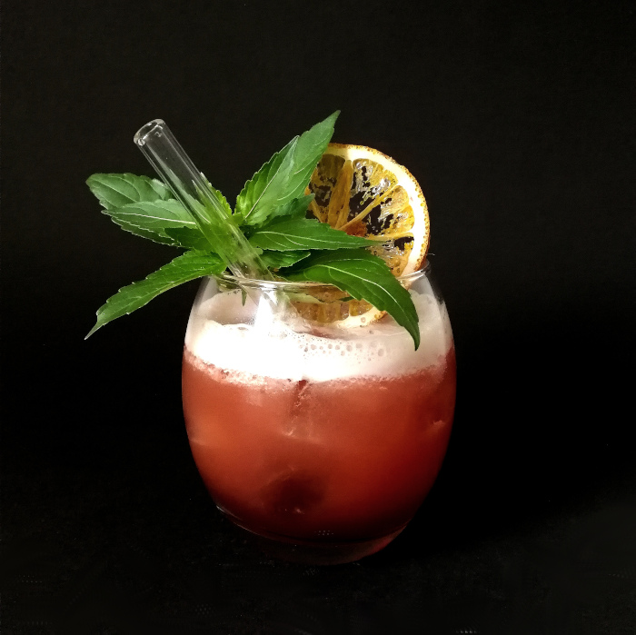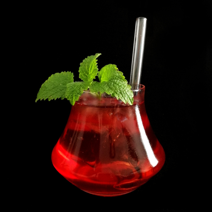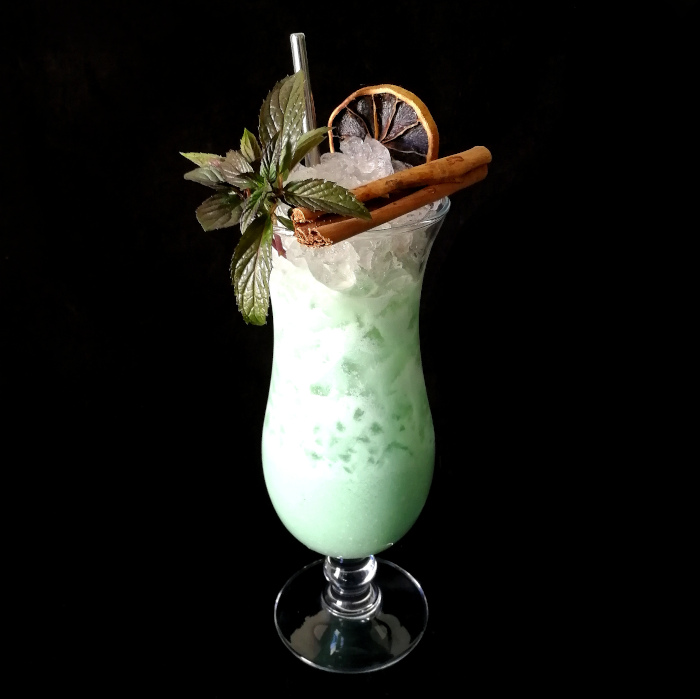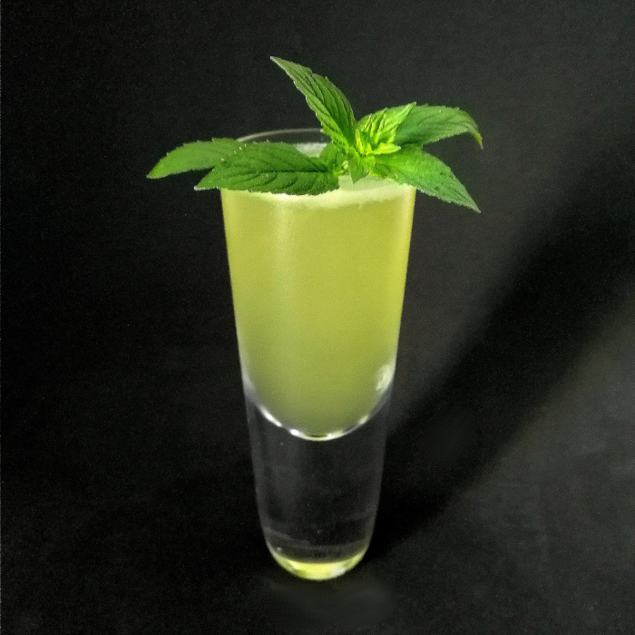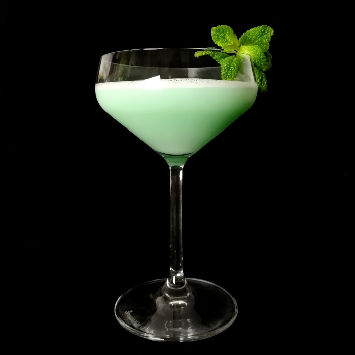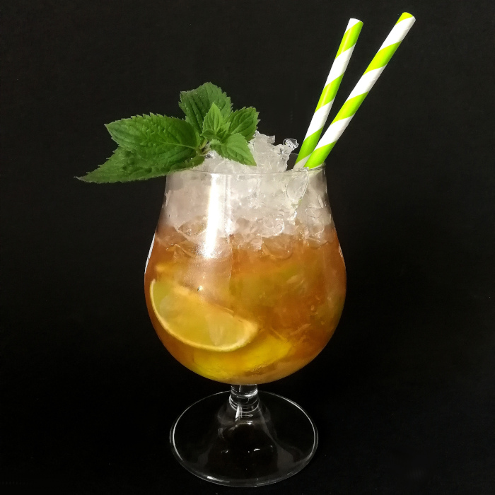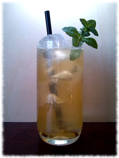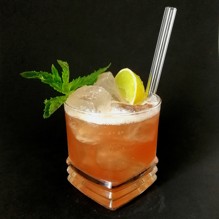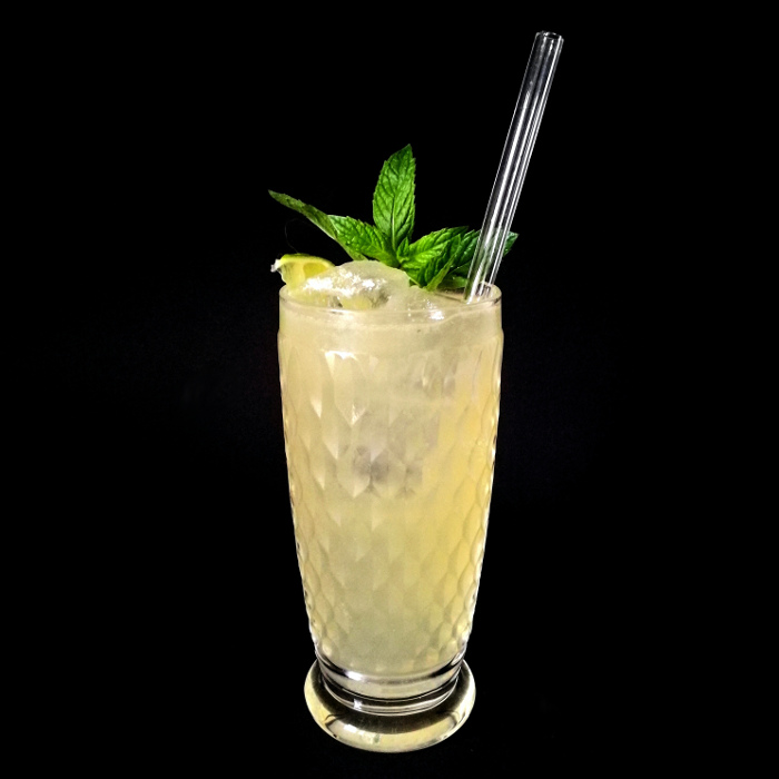 Auf Eis shaken. Auf frisches Eis abseihen und mit Minze dekorieren.