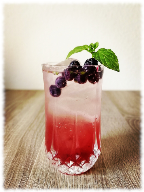 Auf Eis shaken. Mit etwas Sprudel aufgießen.