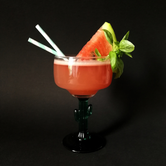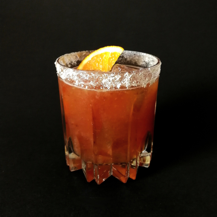 Auf Eis shaken. In ein mit Salzrand versehenes, mit Eis gefülltes Glas abseihen und mit Limettenspalte dekorieren.