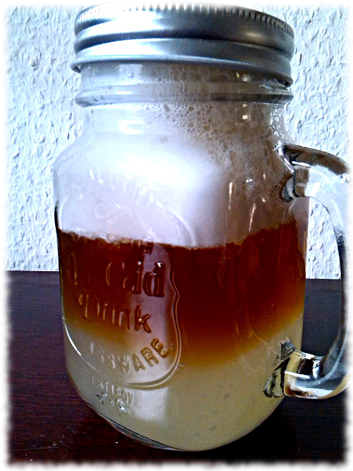 …auf 4 oz Hefeweizen (z.B. Störtebeker Roggen-Weizen) gießen