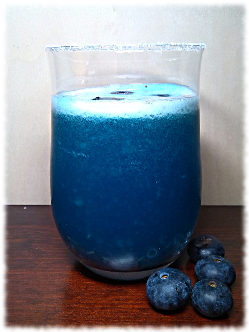 In einem Glas mit gemischter Zucker-Salz-Kruste servieren.