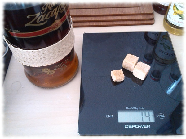 Während ich mich über die täuscherischen Pseudo-Altersangaben von lateinamerikanischen Solera-Rums, die zumeist nicht mal echte Soleras sind, sondern Blends, anderswo schon ausgelassen habe, muss ich bei diesem Rum nochmal auf die Süßung zurückkommen, einem Thema, das 2018 eigentlich bereits etwas ausgereizt scheint, doch immer wieder entdeckt man neue Facetten dieses Vorgehens. Knapp über 20g/L (im untenstehenden Foto runtergerechnet auf die 700ml-Flasche entsprechend 14 Gramm Zucker) weist der Ron Zacapa 23 heute auf; frühere Messungen hatten über den doppelten Wert ergeben.