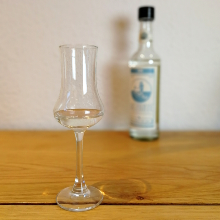Es findet am Ende keine Holzreifung statt, entsprechend ist die Flüssigkeit klar und ohne jede Form von Einschlüssen oder Fehlern. Recht lebendig bewegt sie sich nach dem Einschenken ins Glas, nur minimal viskos wirkt sie dabei. Dennoch bilden sich an der Glaswand dicke, schwere Beine, die eine Weile daran haften und träge ablaufen.