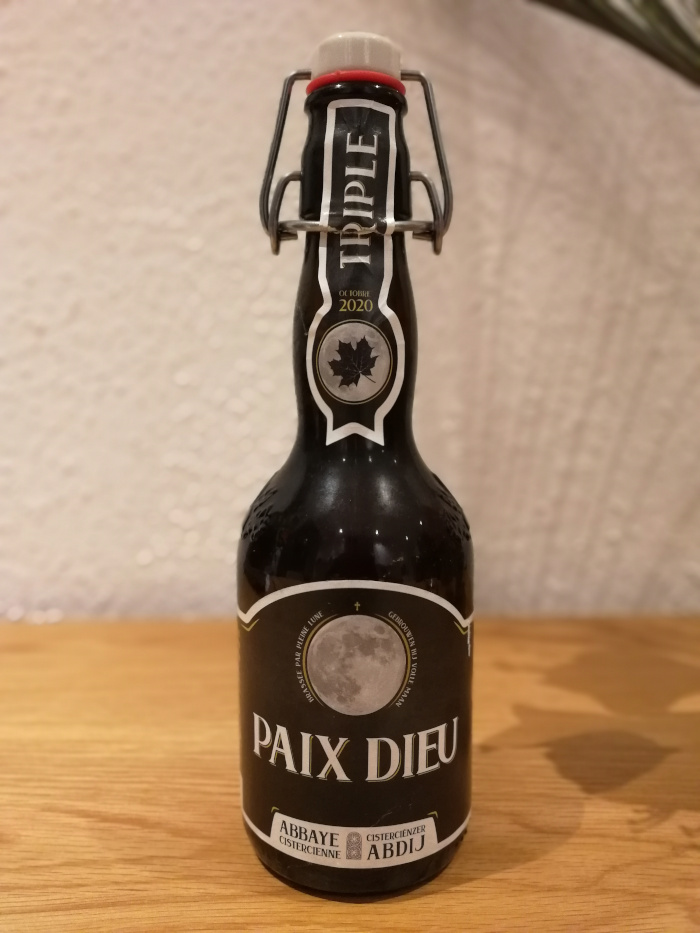 Man weiß als regelmäßiger Leser meines Blogs ja inzwischen, dass ich nicht so viel von blumigen Stories halte, die viele Spirituosen- und Bierhersteller für ihre Produkte erfinden. Beim Paix Dieu Triple geht mir darum schon wieder das Messer im Sack auf, wenn ich lese, dass die Brasserie Caulier ihr Bier „bei Vollmond gebraut“ hat. Das ist zwar keine erfundene Geschichte, aber auch so ein esoterisches Gimmick, das bei mir höchstens müdes Lächeln erzeugt – vor allem, weil sonst kaum handfestere Information auf der 750ml-Braunglasflasche mit Sektkorken und Drahtkorb zu finden ist, obwohl hier wirklich genug Platz dafür wäre. Nun, solange das flaschengegärte zisterziensische Abteibier geschmacklich überzeugen kann, will ich darüber hinwegsehen und statt dessen lieber die Erinnerung hervorholen, wie ich dieses Bier zum ersten Mal probiert hatte – der peruanische Piscokönig Johnny Schuler, neben dem ich in einer Kneipe in Brüssel saß, hatte mich darauf eingeladen, und das ist natürlich ein wunderbares Erlebnis gewesen, bei einem Bier mit Johnny über die Herausforderungen des Brennens der extrem hochregulierten peruanischen Nationalspirituose zu diskutieren. Nun aber zum Bier!