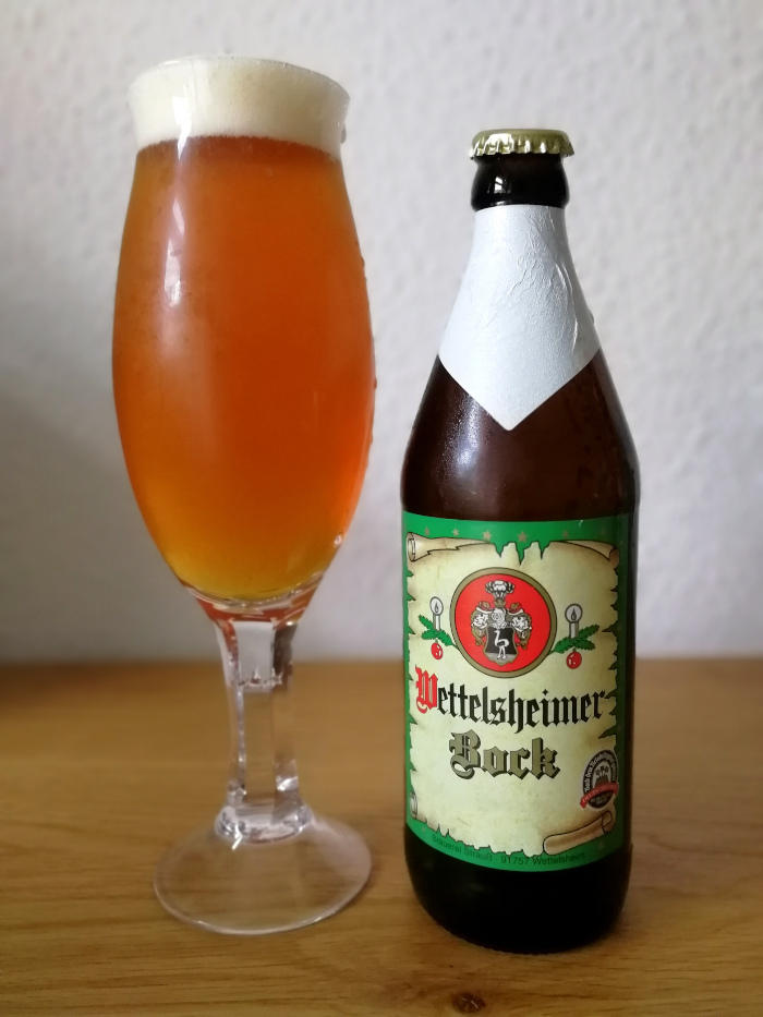 Manche Dinge sind unlösbar mit bestimmten Situationen verbunden. Ich persönlich verbinde beispielsweise die heute hier vorgestellten Biere ganz stark mit Weihnachten – mein Bruder hatte vor ein paar Jahren einen Kasten des Wettelsheimer Bier Heller und Dunkler Bock zur Familienweihnachtsfeier mitgebracht, und seitdem ist das eine Art Ritual geworden. Die Brauerei stellt diese Bockbiere in der Vorweihnachtszeit her, nennt sie darum auch gerne „Weihnachtsbock“. Beide haben eine Stammwürze von 16,6% und einen Alkoholgehalt von 6,6% – und man muss wissen, welcher welcher ist, denn das Etikett ist diesbezüglich unauskünftig. Da hilft nur Probieren!