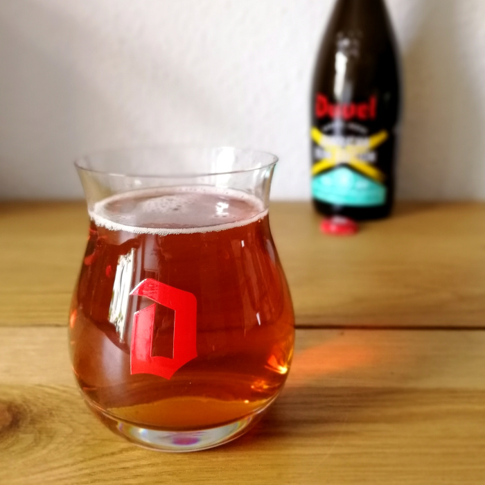 Im Vergleich zum „normalen“ Duvel hat die Fassreifung ordentlich was an Farbe gebracht, auch die Aromatik hat sich deutlichst verschoben, das ist ein ganz anderes Bier. Die Frische des Originals ist erhalten geblieben, da das klassische Duvel aber eh schon kein superaromatisches Bier ist, hat diesbezüglich das Fass voll übernommen.