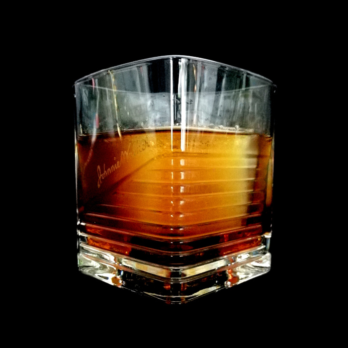 Auf Eis rühren. Auf einem großen Eiswürfel servieren.