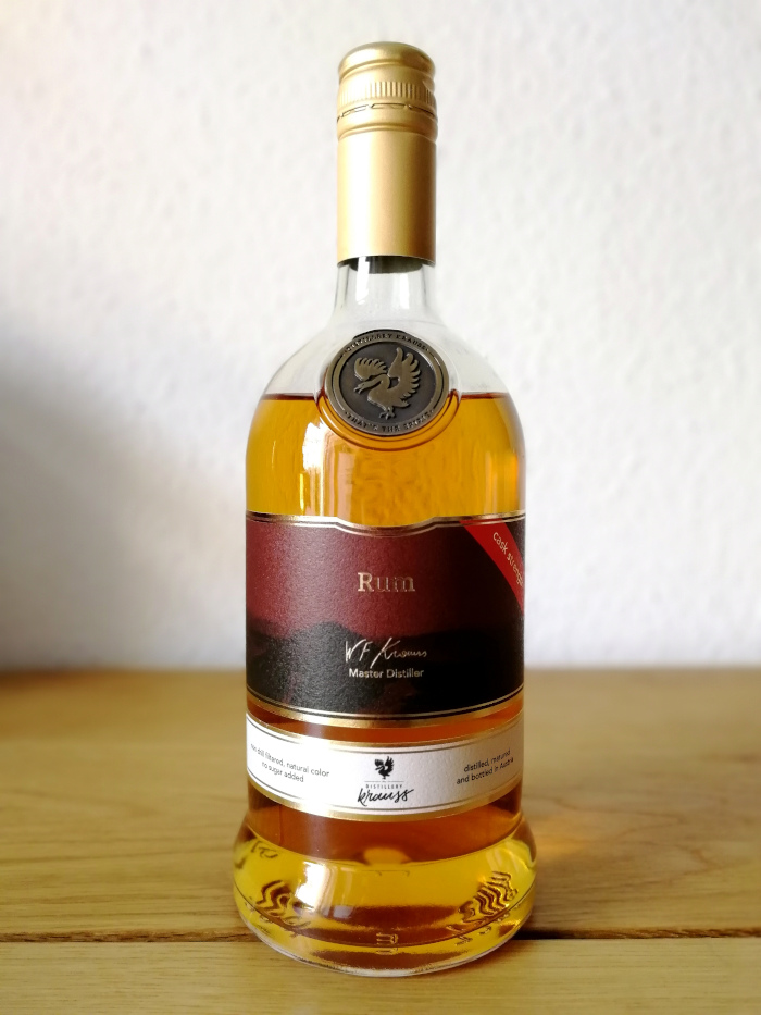 Ich habe hier bereits diverse kontinentale Rums besprochen, heute gehen wir zu einem ähnlichen Zweck mal in eine Region, die man auch nicht so richtig mit Rumherstellung assoziert: Die Steiermark. Dort haben Carmen und Werner Krauss ihre Brennerei, und machen unter anderem den Distillery Krauss Rum Cask Strength und den Rum Sherry Cask Finished. Man bezieht sich in der Produktbeschreibung direkt auf das, was ich zuvor erwähnt hatte – das Können, das man sich beim Brennen von Obst angeeignet hat. Die eingekaufte Melasse (es ist wohl aber nur eine Frage der Zeit, bis Zuckerrohr auch im Leibnitzer Feld angebaut werden kann, wenn man die Anstrengungen zum Klimaschutz im aktuellen Umfang so weiterplätschern lässt) wird mit zwei ausgewählten unterschiedlichen Hefesträngen, die die Fruchtigkeit betont hervorbringen sollen, fermentiert und dann doppelt gebrannt. Es kommen weder Farb- noch Süßstoffe zum Einsatz, ich freue mich immer, wenn ich solche Aussagen auf Etiketten sehe.