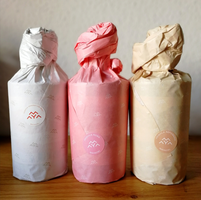 Wie man sieht, sind die anderen zwei Produkte im Mayaciel-Portfolio in analogem Design gehalten, durchgängig und klar über Farbensprache gesteuert: ein Blanco steht ebenso bereit wie ein Reposado, um die Klammer um den Rosa zu bilden. Beide werde ich sicherlich auch noch besprechen, in naher Zukunft, und ich freue mich schon darauf – Tequila ist für mich einfach der König der Spirituosenwelt.