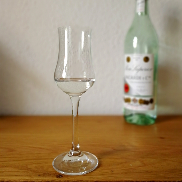 Keine Fehler findet man in der kristallklaren Flüssigkeit, die schwer im Glas schwappt, wenn man es bewegt. Es bildet sich ein fetter Film an der Glaswand, der sich nur widerwillig in Beinchen auftrennt, um dann abzulaufen.