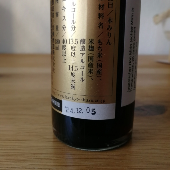 Wie bei so vielen asiatischen Dingen ist man bei Kankyo Shuzo, dem Brauer, ansässig in der Präfektur Aichi in Zentraljapan, stolz auf die vielhundertjährige Tradition, die hinter so einem besonderen Likör steckt. 20 Jahre ruht dieser Hon Mirin in Stahltanks, bevor er mit 14% Alkoholgehalt abgefüllt wird, eine Wartezeit, die nicht vielen Mirins gegönnt wird. Wer soviel Zeit investiert, hat auch glaubwürdig keinen Bedarf nach Zusatzstoffen, um das Wunscharoma zu erreichen – weder Zucker noch sonstige Additive kommen dazu, die Süße und der Geschmack entstammen rein dem fermentierten Reis. Die Verwendung regionaler Basismaterialien und des lokalen Wassers passen in dieses Bild eines hochwertig hergestellten, traditionellen Produkts. Was kommt am Ende aber tatsächlich geschmacklich raus? Wir schauen nach.