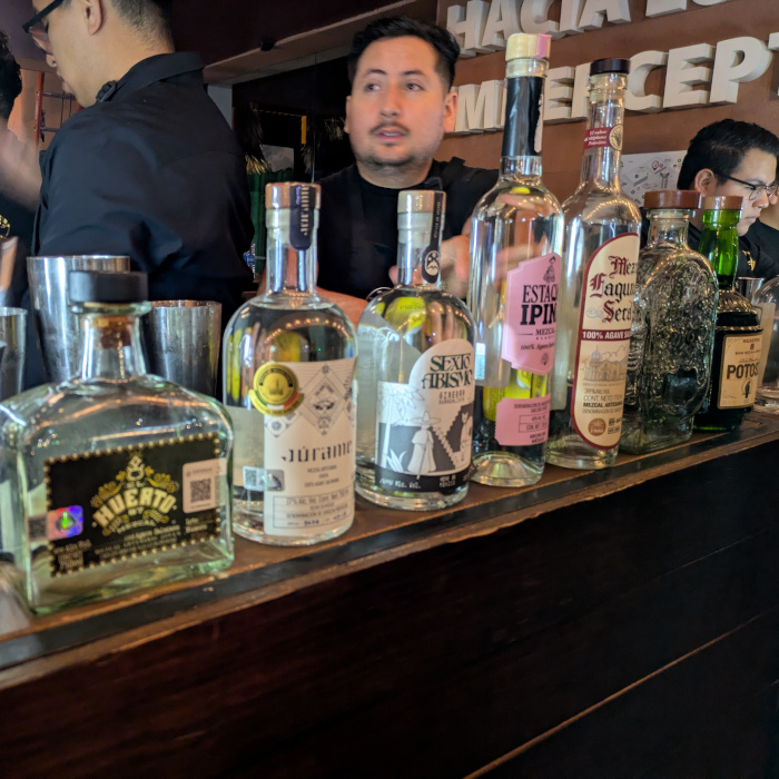 Zur Flasche an sich gibt es nicht viel zu sagen, außer dem Etikett, wie schon in der Einleitung erwähnt. Um so mehr allerdings zu der Region, aus der dieser Mezcal kommt; ich hatte ja die großartige Möglichkeit, während México Selection by CMB 2024 ein paar Tage in San Luis Potosí zu verbringen und die Stadt, die Menschen, und die Gewohnheiten ein bisschen kennenzulernen. In Bildern kann man die Intensität, die ich erleben durfte, nicht wiedergeben, ich versuche es trotzdem. Bei La Oruga y La Cebada setzten sich ein paar Leute und ich zusammen, bestellten eine Flasche Mezcal nach Empfehlung des Hauses, und es war dann zufällig eben genau der Estación Ipiña. Man lernt: in der Region wird Mezcal mit Limetten-, Zitronen- und Orangenschnitzen und einem orangeroten Würzsalz serviert, auch wenn sich dem Kenner dabei erstmal die Haare sträuben. Doch die Erfahrung ist wichtig: nicht alles, was man als Purist so denkt, wird von denen, die Mezcal herstellen und täglich trinken geteilt. Also entspannt man sich, genießt den Mezcal mit Salz, und passt sich den Menschen dort an. Ich werde für meinen Teil nicht mehr herablassend über diese Kombination reden!