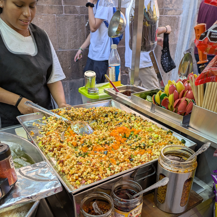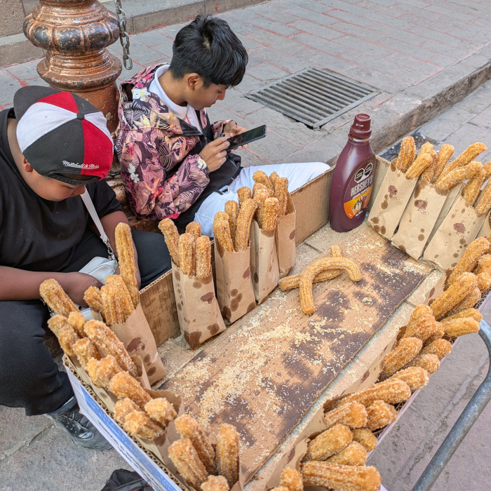 Besonders in Erinnerung habe ich noch den Spaziergang am Tag der Ankunft, als ich noch allein in der Stadt unterwegs war. Diese superscharfe Mischung aus Mais, 4 verschiedenen Chilis und Sour Cream, die man in Pappbechern für ein paar Pesos bekommt, trieb mir so sehr die Tränen in die Augen, dass ich keuchend einen Ausgleich suchte, und ihn glücklicherweise in den hausgemachten Churros der noch sehr jungen Verkäufer fand – 20 Pesos, rund 80ct, kostet so eine Packung am Straßenrand. In einem Laden habe ich mir dann noch einen mexikanischen Cowboyhut gekauft, den ich im Sommer hier in Saarbrücken tragen werde – ich bin gespannt auf die Reaktionen, der Saarländer an sich ist eher konservativ. Zu guter letzt erwähne ich noch den tollen letzten Abend, den eine kleine Gruppe aus gastfreundlichen und gut gelaunten Mexikanern, einem gewitzten US-Amerikaner, einer äußerst attraktiven Kanadierin und einem strengen Portugiesen (und mit mir natürlich), zusammen verbrachte, zuerst im Callejón 7B, einer Brauerei mit großartigen Bieren und Snacks, und später im Rincón Huasteco, wo wir nochmal richtig bei den herausragenden Tacos, Enchiladas, Tamales, Enfrijoladas und Bocoles zuschlugen. San Luis Potosí ist eine wirklich unterhaltsame Stadt, die alles bietet, was der Tourist erleben will. Nunca nos vamos a ir, das war das Motto des Abends, und ich fühle und vermisse es heute noch.