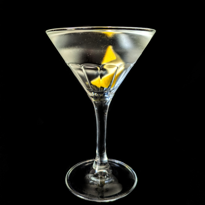 Auf Eis rühren. Mit einer Zitronenzeste absprühen.