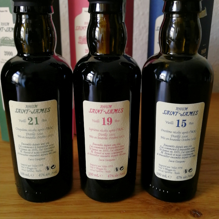 Heute haben wir wieder einmal ein Trio im Angebot, und weil ich darüber hinaus schon viel über das Set Verticale Velier Rhum Vieux A.O.C. Martinique Millésimes Saint-James erzählt hatte, halte ich mich ausnahmsweise mal zurück, mir einen elaborierten Spannungsbogen aus den Fingern zu saugen, kommen wir einfach mal direkt zur Sache (man gewöhne sich nicht daran, ich werde meine Leser in Zukunft weiter mit mehr oder weniger unterhaltsamen Anekdoten aufs Thema lenken, keine Sorge!). Saint-James Très Vieux Rhum Agricole Millésimes 2000, 2002 und 2006 sind drei weitere der Jahrgänge, die man im wunderbaren Verticale-Set finden konnte. Saint James gehört durchaus zu den von mir öfter besprochenen Brennern, man kann hier auf meinem Blog ein paar Eindrücke anderer Sorten des Herstellers sammeln, über dieses Set hinaus. Diese Lektüre lege ich natürlich jedem ans Herz, der sich nach diesen Jahrgangsrums, die nun folgen, weiter für die Destillerie auf Martinique interessiert.