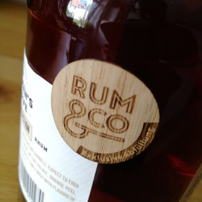 Geliefert wird der Chairman’s Reserve in einer halboffenen Kartonumverpackung. Sehr charmant wirkt der Holzaufkleber, auf dem der Rum&Co-Schriftzug eingebrannt ist, mit dem diese limitierte und exklusive Sonderabfüllung markiert ist. Ein paar Details auf dem edel in schwarz-weiß-gold gestalteten Etikett erfreuen dann auch das Herz des an solchen kleinen Informationen interessierten Genießers.
