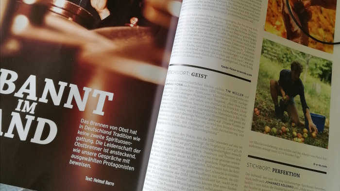 In der Fizzz #5/2023 kann man wieder einen Artikel von mir lesen – ich freue mich ehrlich sehr, wenn es scheinbar auch bei Printmagazinlesern ankommt, was ich schreibe. Dieses mal geht es um Eindrücke, die ich gesammelt habe, als ich mit verschiedenen Leuten gesprochen hatte, denen Obstbrand wichtig ist, von Brennern bis Mixologen. Während der Recherche für diesen Artikel habe ich ein längeres Gespräch mit Johannes Kolonko geführt, in dem er mir viel mehr nahegebracht hat als einfache Informationen oder Fakten – wenn man mit ihm redet, spürt man regelrecht, dass er völlig aufgeht in dem, was er tut. Als Einmannbetrieb macht er alles selbst, von Ernte über Vorbereitung der Frucht und dem Maischen und Brennen bis hin zum Abfüllen, Etikettieren und Vermarkten. Was am Ende herauskommen soll sind Obstbrände auch höchstem Niveau, die Kolonkos eigenem Anspruch gerecht werden können, und der ist, das hört man in der Diskussion mit ihm sofort heraus, hoch. Ein Obstbrand ist ein „harmonisches Zusammenspiel zwischen Mensch und Natur“, wie Kolonko selbst betont.