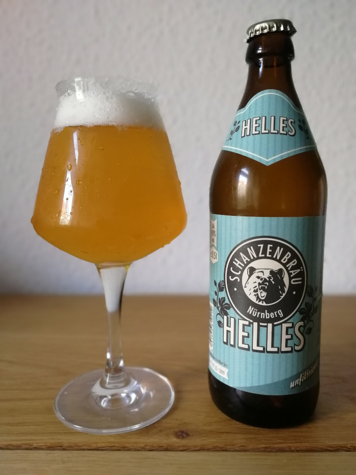 Auch beim Hellen von Schanzenbräu erwarte ich keine Geschmacksexplosion – ähnlich wie ein Rotbier lebt ein Helles von anderen Elementen als verrückte Hopfennoten oder extreme Effekte. Farblich ist es schonmal typisch, wie der Stilname schon andeutet, hell und leuchtend, leicht opalisierend, mit beinahe blassem Gelbgold. Der Schaum ist beim Eingießen kräftig dick, nach kurzer Stehzeit dann aber, wie schon beim Rotbier, dünn und feinblasig.