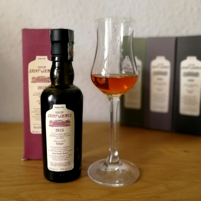 Der italienische Importeur Velier und die Rumbrennerei Saint James auf Martinique haben eine enge Beziehung, die schon seit über 40 Jahren besteht. Jean-Claude Benoit, General Manager bei Saint James, und Luca Gargano von Velier kennen sich seit 1975. Als das 25-jährige Jubiläum für die AOC-Einführung für Rum aus Martinique 2021 anstand, taten die beiden sich mit Production Manager Marc Sassier zusammen und füllten gemeinsam eine Reihe von 10 Rums ab, die repräsentativ für diese 25 Jahre bei der Saint-James-Destillerie stehen: die Verticale Velier Rhum Vieux A.O.C. Martinique Millésimes Saint-James, manchmal auch unter dem Titel Saint James AOC Anniversary Collection zu finden. Es wird betont, dass es sich hier um ein „co-bottling“ handelt, bei dem alle Partner gleichberechtigt handeln, und nicht um eine unabhängige Abfüllung von Velier. Das Design stammt daher von beiden Partnern, und die Flaschen wurden von Italien nach Martinique verfrachtet, um dort offiziell abgefüllt zu werden.
