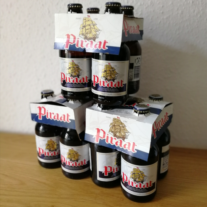 Erneut zwei großartige belgische Biere, Piraat ist wie gesagt schnell einer meiner Lieblingsbelgier geworden, in beiden Varianten, einfach weil es so wuchtig und fett daherkommt wie kaum ein zweites. Da hat man wirklich was im Mund – nicht ein Bier für immer, aber zwischendurch darf der Pirat ruhig bei mir Anker werfen. Mich hat das Piraat wirklich so geflasht, als ich es das erste Mal getrunken habe, dass ich dann schnell alle Lidl-Filialen abgeklappert und alles, was ich davon kriegen konnte, mitgenommen habe. Scheinbar war es auch keine völlig einmalige Aktion, ein paar Monate später tauchte es wieder in den praktischen Vierertragerln in diversen Filialen des Discounters auf – erneut habe ich üppig zugeschlagen. Man achte bei derartigen Mengenkäufen nur darauf, dass die Flaschen seltsamerweise mit einem 25ct-Einwegpfand versehen sind, und nicht jeder Getränkemarkt sie zurücknimmt.