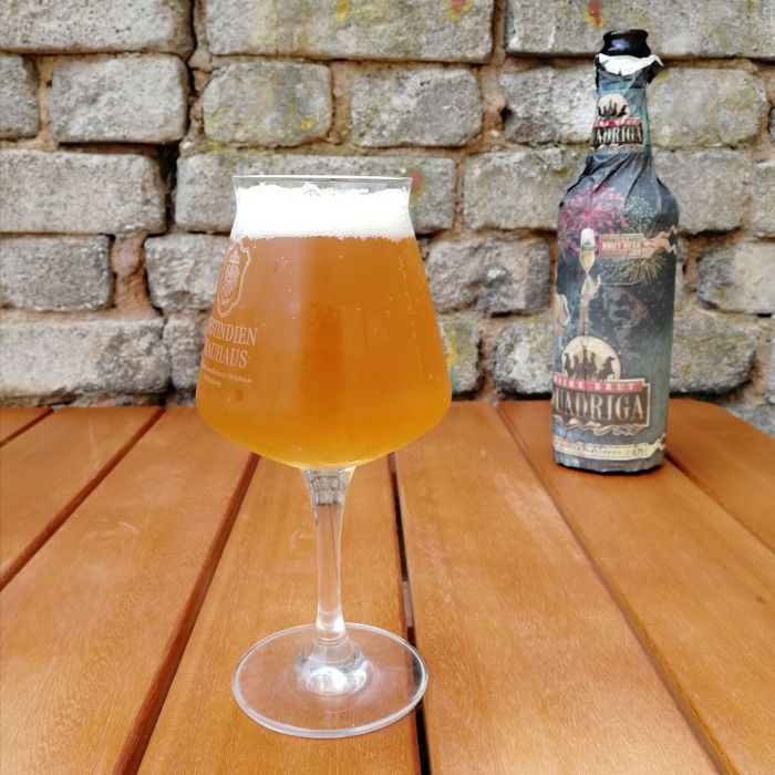 Die Nase ist sehr weinig, leichte Frucht in Richtung Aprikose und Zwetschge spielt mit, eine milde Nusskomponente, vielleicht Cashewkerne, gibt noch Struktur dazu. Ein Anflug von milder, süßlicher und blumiger Seifigkeit, gar nicht unangenehm. Etwas Schwefel, aber wirklich nur eine Idee, und leichte Buttrigkeit, erinnernd an Karamellbonbons und Shortbread, wechseln sich im Geruch ab. Ein insgesamt für mich sehr ansprechendes Bild, vielleicht etwas zwickend, wenn man zu tief schnuppern will, aber rein von der Aromatik her – ich bin sehr positiv überrascht.
