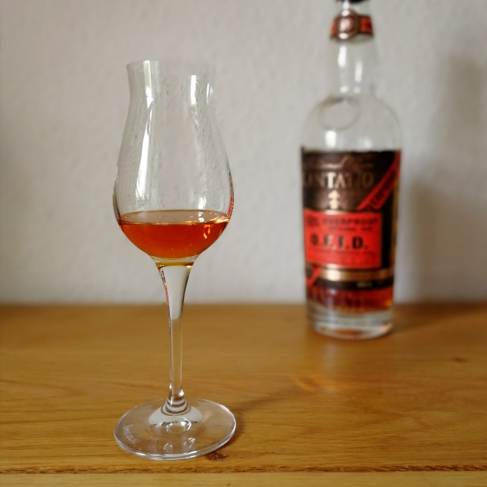 Mit der Geruchsprobe sei man etwas vorsichtig, die 69% Alkoholgehalt pieksen ganz schön in den Schleimhäuten. Und man muss die Nase trotzdem tief ins Glas halten, denn so richtig anspringen tut mich der O.F.T.D. geruchlich nicht. Da sind ein paar typische Jamaika- und Guyana-Noten, aber sonst? Ich rieche hellen Tabak, etwas Kokos, natürlich Trockenfrüchte, etwas reife Banane und eine ganz leichte Nussigkeit. Ein würziges, beinahe erdiges Geruchsbild insgesamt, dabei aber doch arg zurückhaltend. Und dann ist neben dem Stechen des Alkohols auch ein ethanolischer Hauch dabei, der mich nicht begeistert.