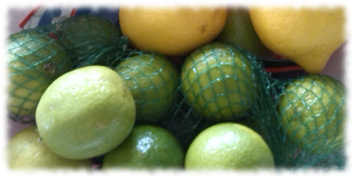 Und schließlich frische Zutaten, die man ständig nachkaufen muss – die eine oder andere Zitrone, viele viele viele Limetten, und einen Balkontopf mit Minze und Basilikum.
